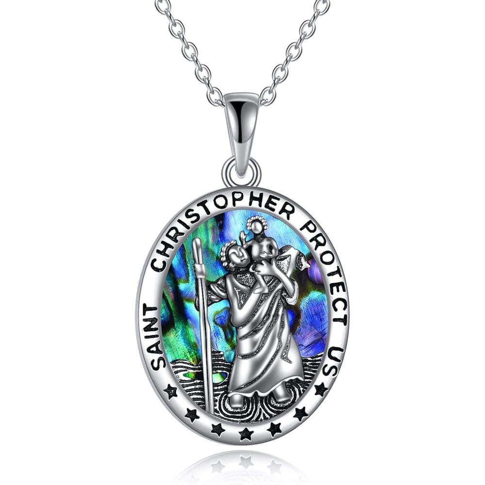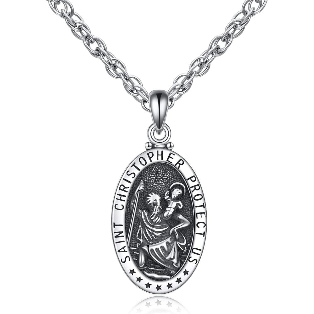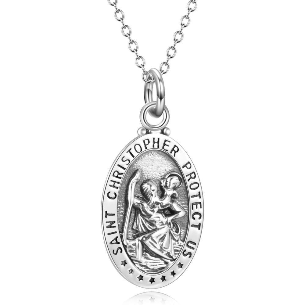 YFN 925 Sterling Silver Patron Saint Medal Necklace Amulet Necklace Protection Jewelry for Women and Men(with Gift Box)(A01 St. Christopher)