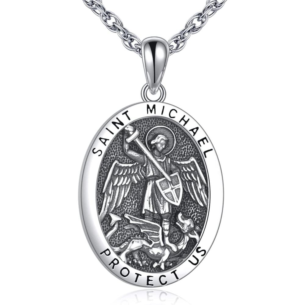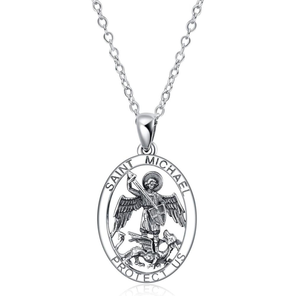 YFN 925 Sterling Silver Patron Saint Medal Necklace Amulet Necklace Protection Jewelry for Women and Men(with Gift Box)(B01 St. Michael)
