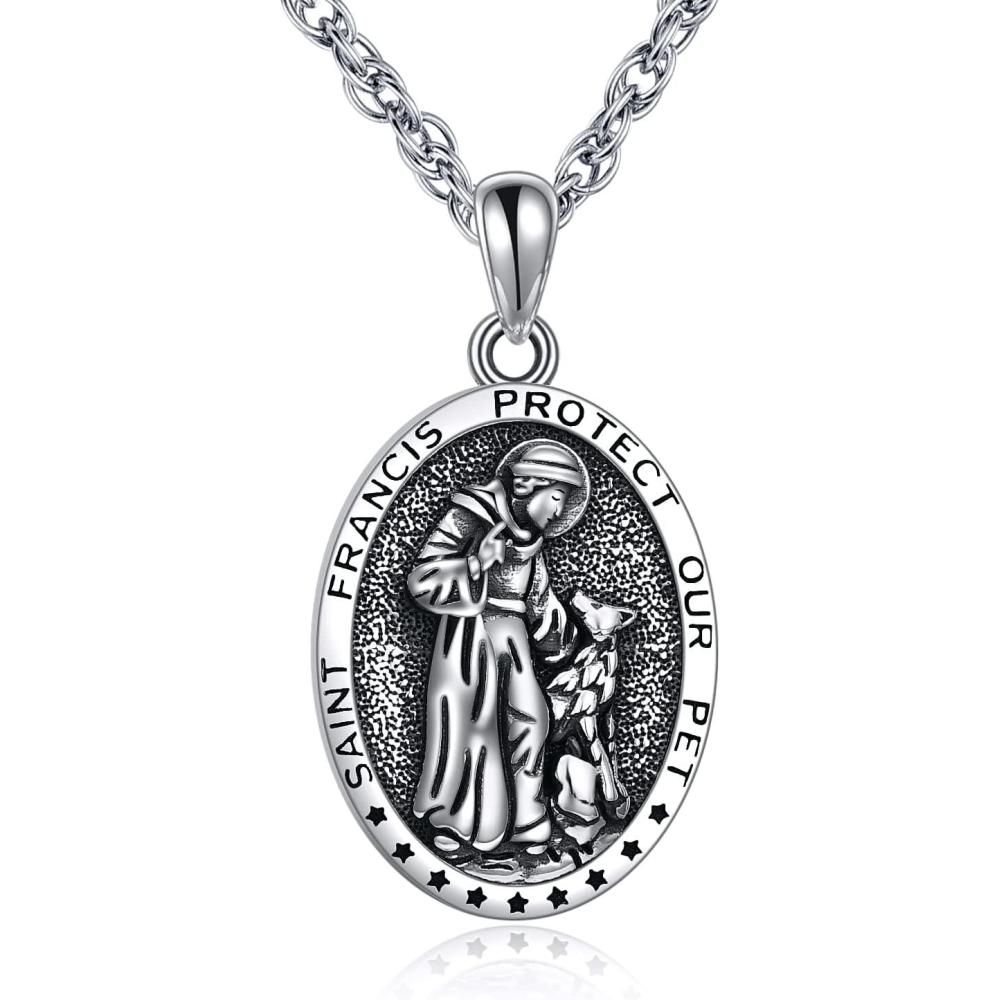 YFN 925 Sterling Silver Patron Saint Medal Necklace Amulet Necklace Protection Jewelry for Women and Men(with Gift Box)(C01 St. Francis)
