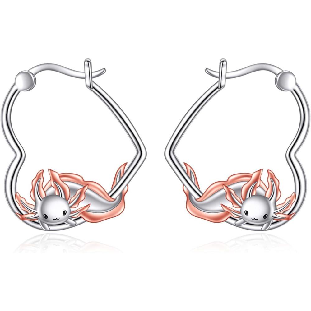 YFN Animal Earrings Sterling Silver Animal Heart Hoop Dangle Earrings Cute Jewelry Gifts for Women(Axolotl)