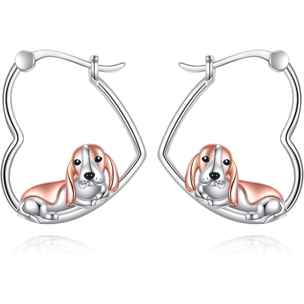 YFN Animal Earrings Sterling Silver Animal Heart Hoop Dangle Earrings Cute Jewelry Gifts for Women(Basset Hound)