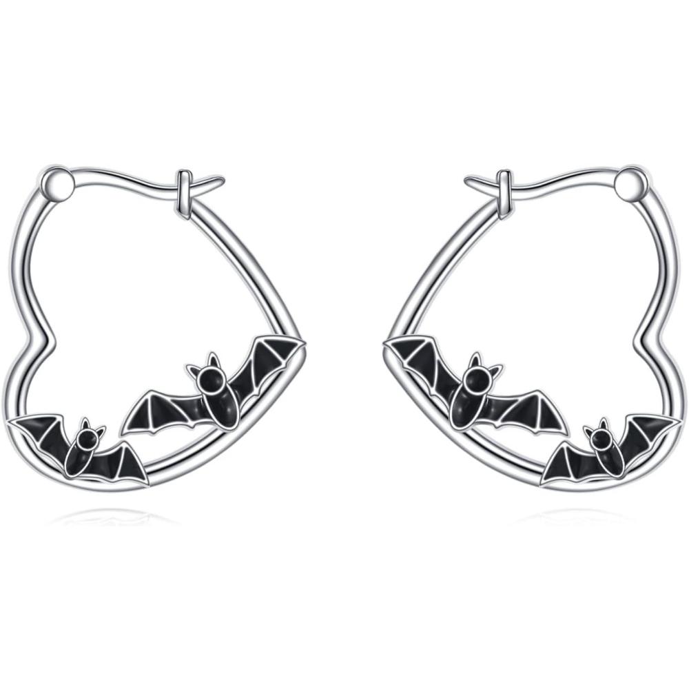 YFN Animal Earrings Sterling Silver Animal Heart Hoop Dangle Earrings Cute Jewelry Gifts for Women(Bat)