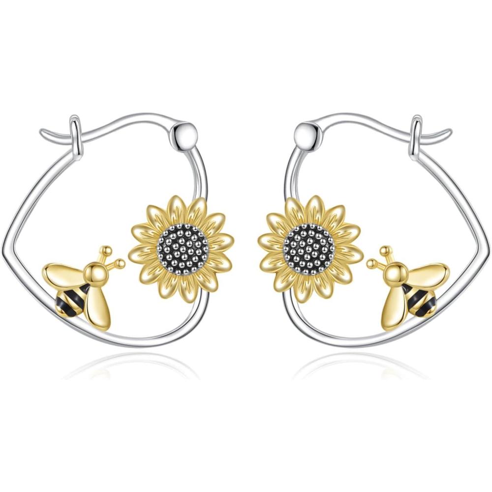 YFN Animal Earrings Sterling Silver Animal Heart Hoop Dangle Earrings Cute Jewelry Gifts for Women(Bee)