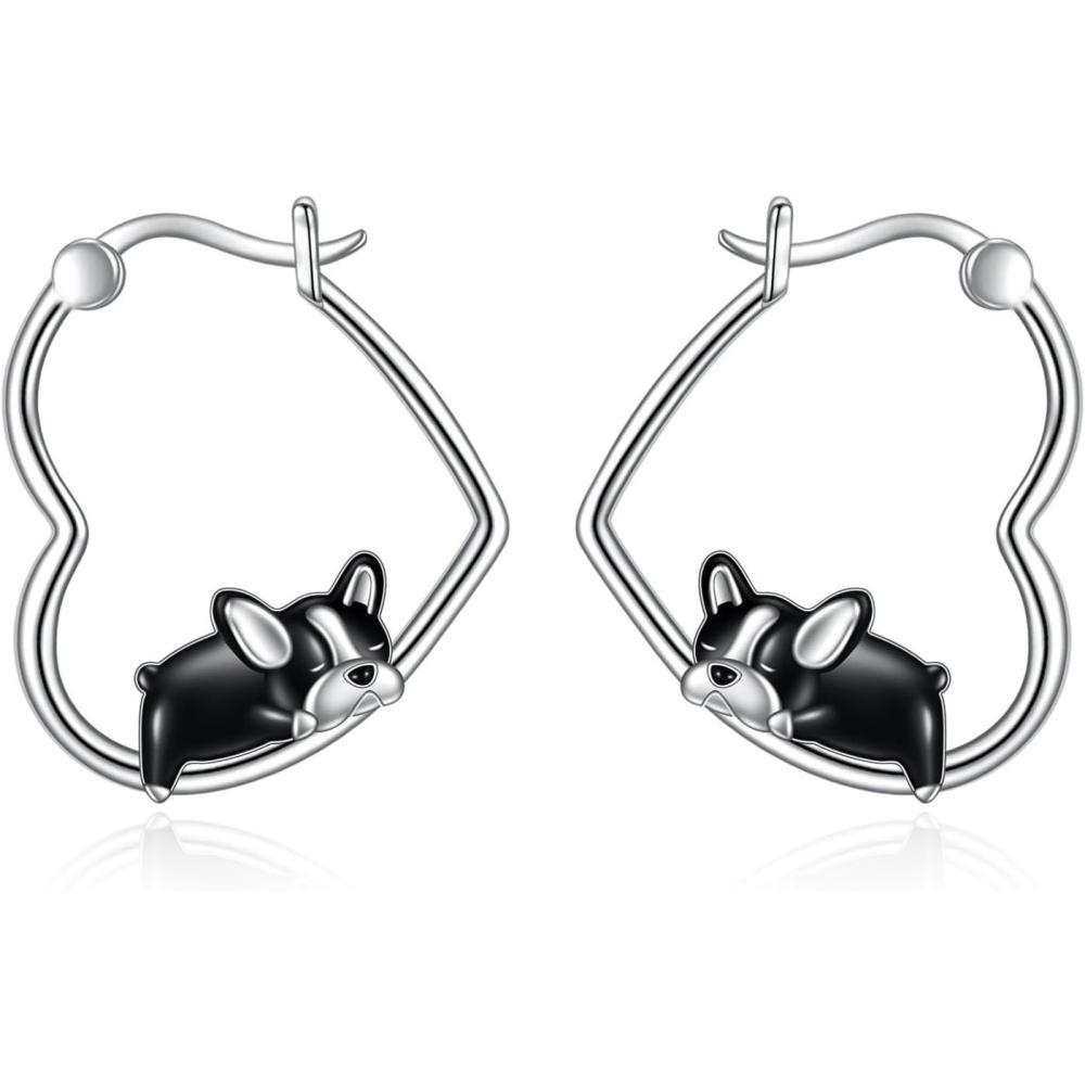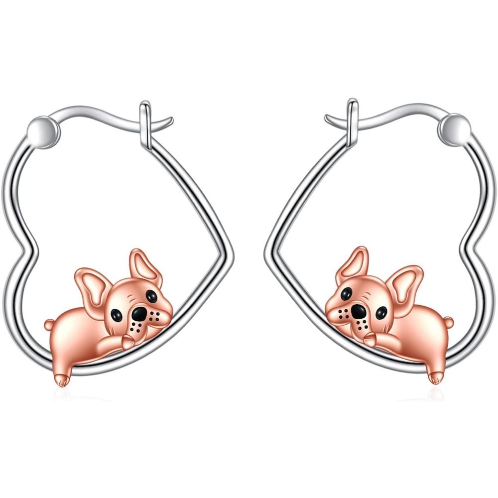YFN Animal Earrings Sterling Silver Animal Heart Hoop Dangle Earrings Cute Jewelry Gifts for Women(French Bulldog)
