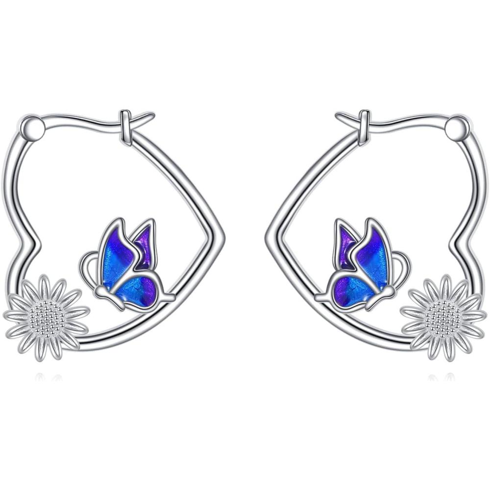 YFN Animal Earrings Sterling Silver Animal Heart Hoop Dangle Earrings Cute Jewelry Gifts for Women(Butterfly)