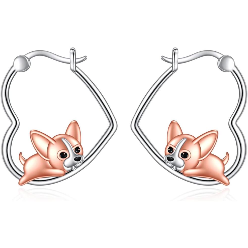 YFN Animal Earrings Sterling Silver Animal Heart Hoop Dangle Earrings Cute Jewelry Gifts for Women(Chihuahua)