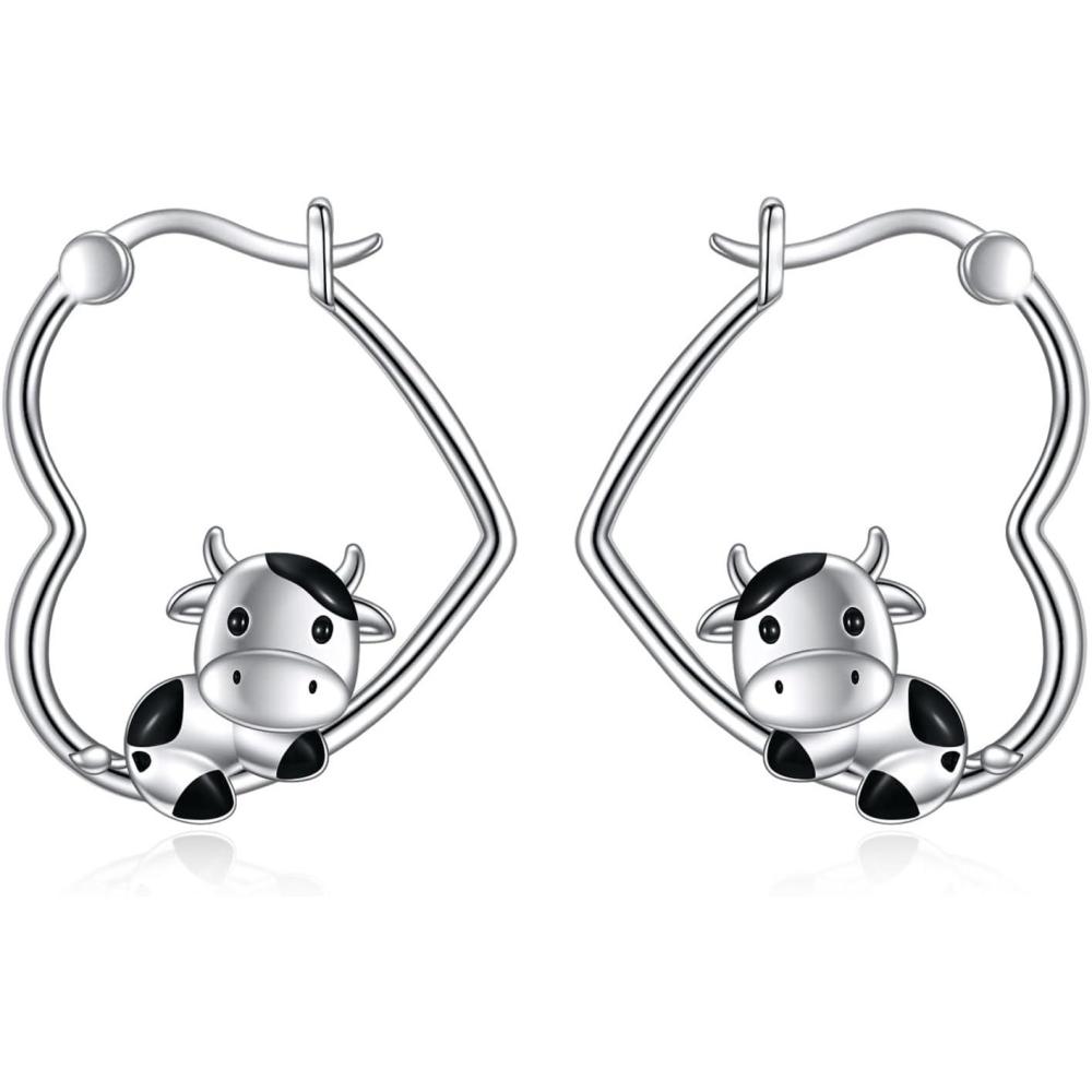 YFN Animal Earrings Sterling Silver Animal Heart Hoop Dangle Earrings Cute Jewelry Gifts for Women(Cow)