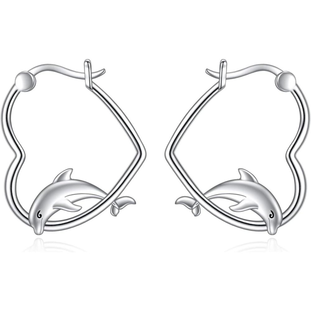 YFN Animal Earrings Sterling Silver Animal Heart Hoop Dangle Earrings Cute Jewelry Gifts for Women(Dolphin)