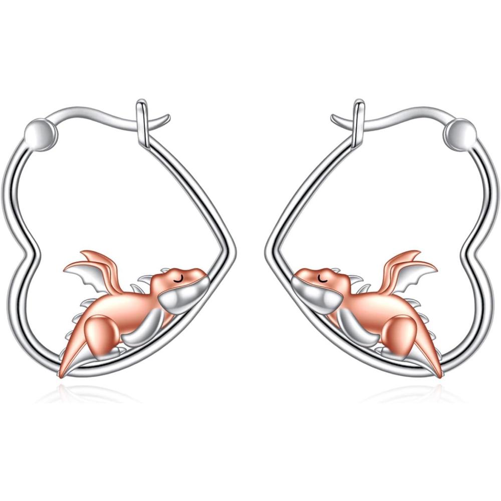 YFN Animal Earrings Sterling Silver Animal Heart Hoop Dangle Earrings Cute Jewelry Gifts for Women(Dragon)
