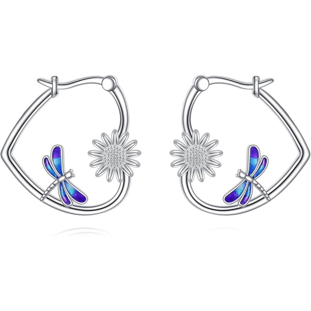 YFN Animal Earrings Sterling Silver Animal Heart Hoop Dangle Earrings Cute Jewelry Gifts for Women(Dragonfly)