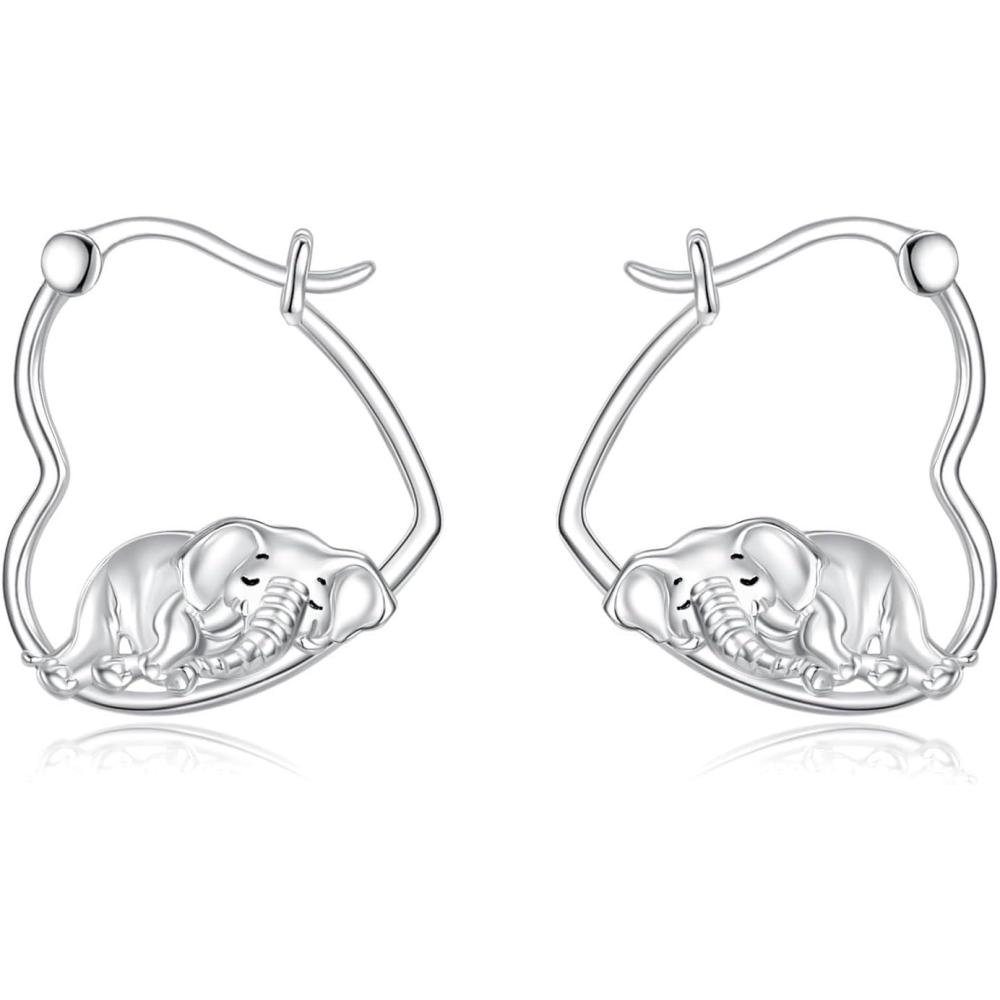 YFN Animal Earrings Sterling Silver Animal Heart Hoop Dangle Earrings Cute Jewelry Gifts for Women(Elephant)
