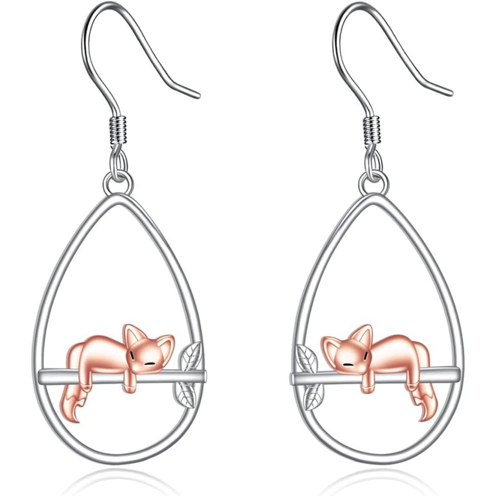 YFN Animal Earrings Sterling Silver Animal Heart Hoop Dangle Earrings Cute Jewelry Gifts for Women(Fox Dangle)