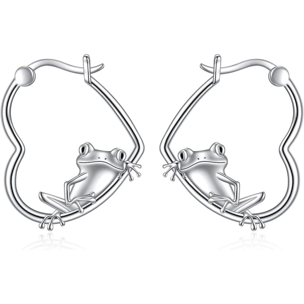 YFN Animal Earrings Sterling Silver Animal Heart Hoop Dangle Earrings Cute Jewelry Gifts for Women(Frog)