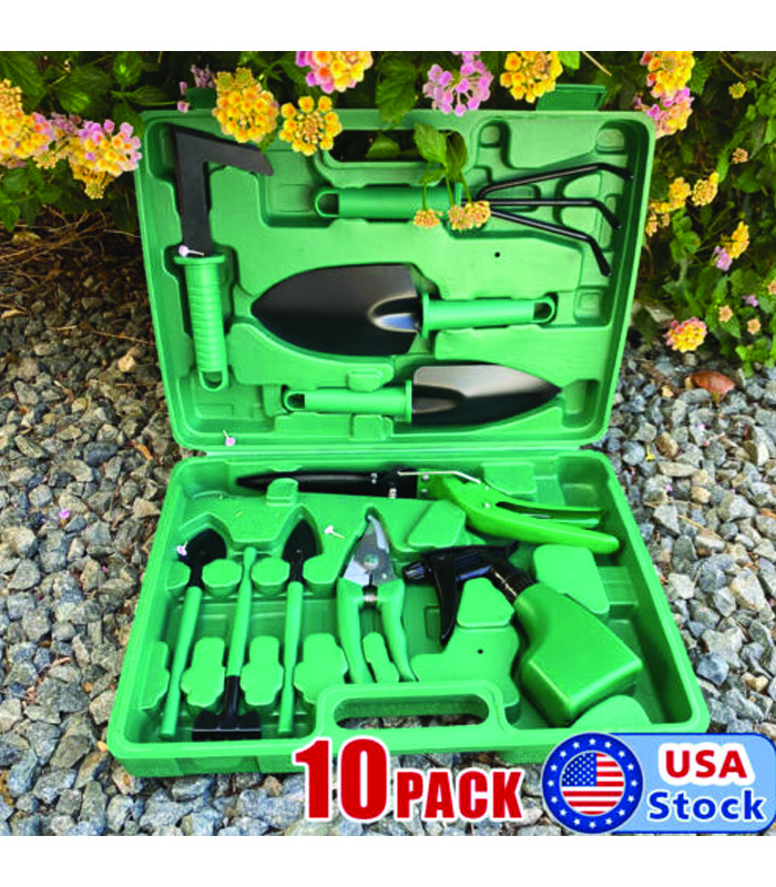 10pc Garden Tool Set Vegetable Flower Gardening Hand Tools Kits w/ Carrying Case