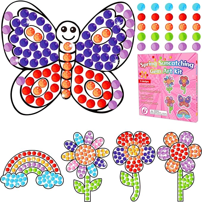 Summer Flower Arts and Crafts, Summer Art Crafts Suncatcher Kits for Children Kids at 6-8, DIY Diamond Painting Kits for Girls at 4 5 10 12